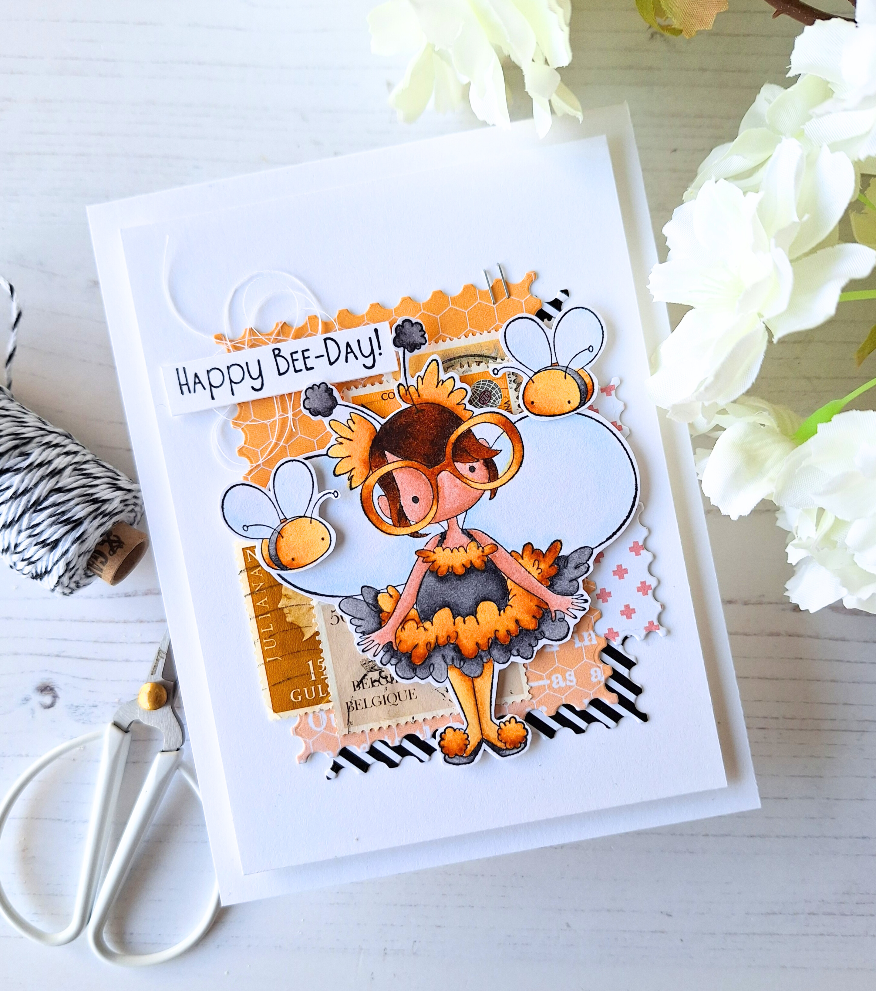 Hai, voor vandaag maakte een kerstkaart met de super schattige Snögubbar med vagn stempelset van hänglar and Wings. De sneeuwpop is gestempeld met Versafine Nocturne op watercolor paper en gekleurd met Zig Clean Color Real Brush Markers