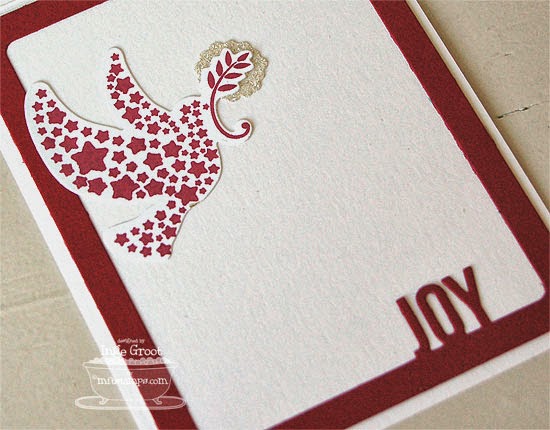Oh Inge, I love the Merry die cut and how you've used it! And I love the peace dove with the poinsettia -- a beautiful card!