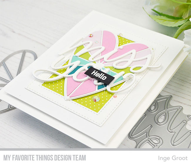 Hoi! Vandaag laat het My Favorite Things Stamps team jullie voorbeelden zien met de Heart Burst Hellos Card Kit. Van hartjes kun je nooit genoeg hebben en met deze kit heb je dan ook een superleuke aanvulling op je collectie met hartjes Dies en stempels. De Kit bevat de volgende items: Heart Burst Hellos Stamp Set, Hey Stamp Set, Heart Burst Die-namics, Hey Die-namics, Miss You Die-namics, Heart Burst Hellos Die-namics en diverse kleuren Card StockDe gratis bij besteding van deze kit van $60 of meer is de Miss You Stamp Set De kit is verkrijgbaar vanaf aanstaande dinsdag 20 April 16.00 NL tijd